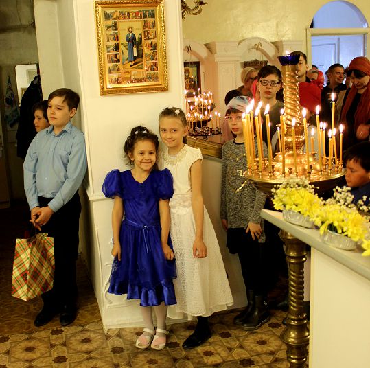 Юные прихожане поздравили женщин праздничной музыкальной программой. Ребята проникновенно спели пасхальный тропарь и песни «Спит Сион», «Ангел Господень…», «Небо». Продолжили концертную программу музыкальные произведения для фортепьяно и стихи. Радости самих детишек и взрослых не было предела! И это замечательно!