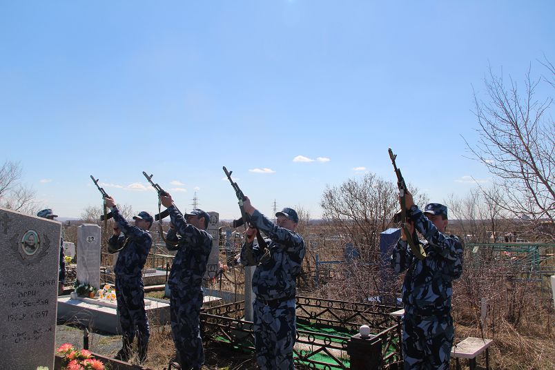 По прибытию на место захоронения состоялась заупокойная лития. Будучи молодым солдатом, Вячеслав Толкачев прошел службу в Афганистане, и о том, каким он был тогда, рассказали сослуживцы Игорь Филимонов и Андрей Виноградский. В похоронной церемонии приняли участие члены Новотроицкого городского отделения «Боевого братства».