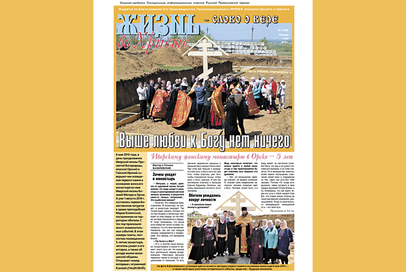 ОРСК. 4 мая 2018 г. Вышел в свет 7-й (468) номер газеты «Жизнь во Христе – слово о вере», посвященный 5-летию Иверского женского монастыря. Представляем вашему вниманию краткий обзор выпуска.