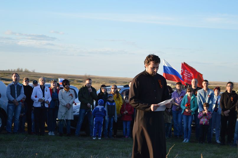 На первой остановке – памятнике скончавшимся от ран в медногорских госпиталях солдатам, расположенном на Ракитянском кладбище, священник обратился с кратким пастырским словом ко всем участникам. После этого священник совершил заупокойную литию о погибших воинах и благословил дальнейшее движение автоколонны.
