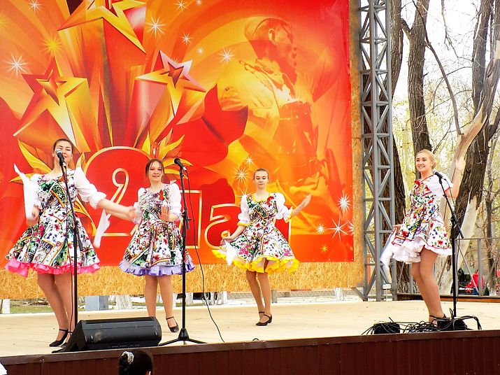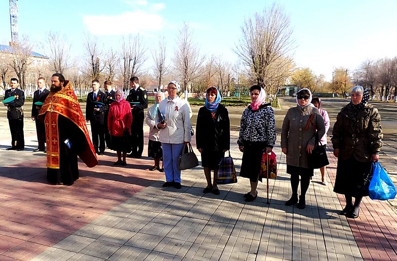 Церковные песнопения в тот день звучали и на площади Строителей – главном месте проведения официальных торжеств по случаю праздника Победы. После соборной молитвы в храме прихожане во главе с настоятелем направились крестным ходом к памятной стеле с Вечным огнём. Там была совершена заупокойная лития по погибшим на фронте и в тылу и всем, невинно убиенным в годы Великой Отечественной войны.