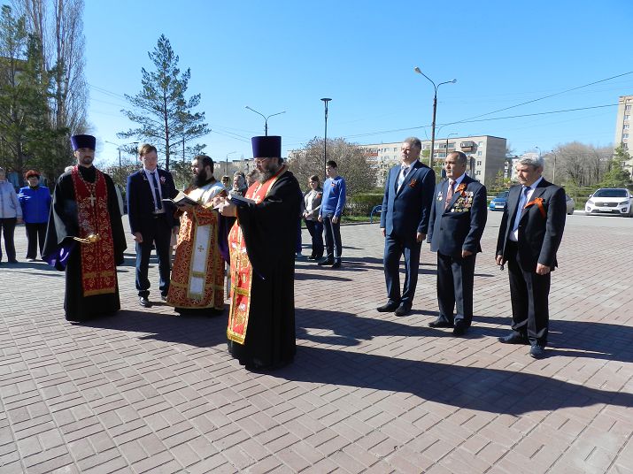 9 мая протоиерей Игорь Никифоров, иерей Виталий Кудрявцев и диакон Димитрий Патоска отслужили панихиду у памятного знака «Выстоявшим и победившим, мертвым и живым» в сквере центральной площади Гая.