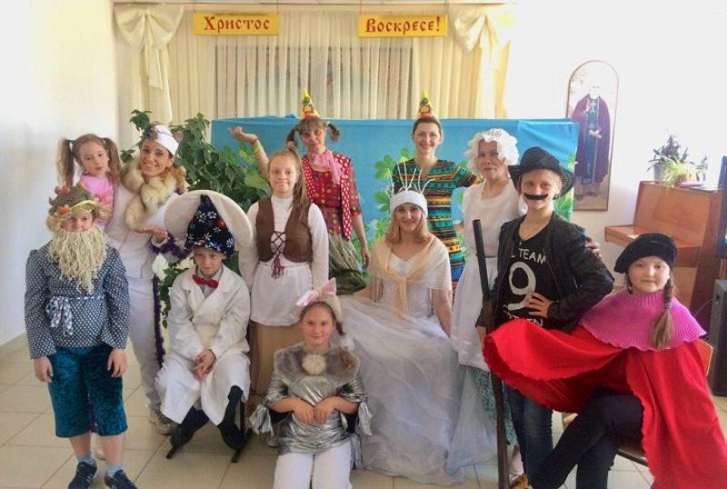 ОРСК. 13 мая 2018 г. В зале воскресной школы храма св. вмч. и целителя Пантелеимона воспитанники театральной студии «Серебряная рощица» (рук. А.А. Велиречейская) показали для прихожан спектакль-сказку «Оранжевый цветок, или С лица воду не пить».