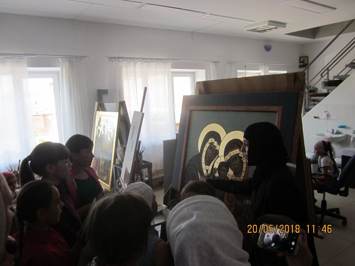 По прибытии в Орский Иверский женский монастырь юные паломники помолились на Божественной литургии, некоторые ребята причастились. От Покровского храма Кувандыка монастырю была подарена икона Рождества Пресвятой Богородицы. После Божественной литургии по приглашению игумении Ксении паломники собрались в трапезной, где духовник монастыря протоиерей Сергий Баранов постарался ответить на все вопросы детей.