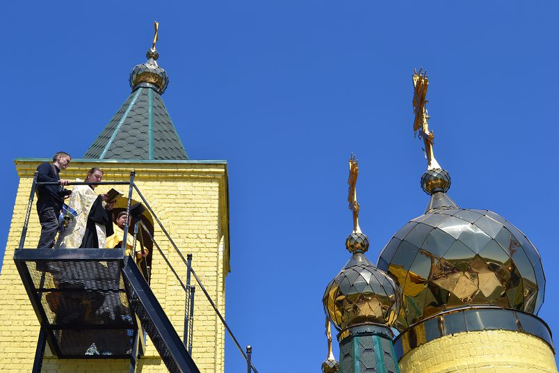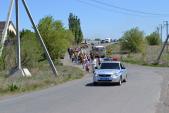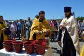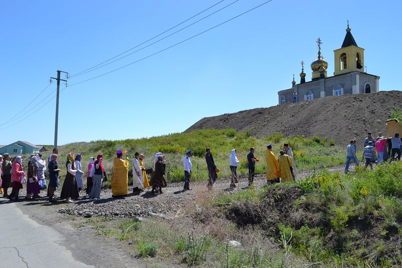 По окончании Божественной литургии из трех храмов – собора апп. Петра и Павла, Святой Троицы и св. ап. Андрея Первозванного с. Хабарного – прихожане вышли крестным ходом для шествия к строящемуся храму в честь святителя Николая Чудотворца в п. Родник, где священники отслужили молебен с водоосвящением и освятили колокола.
