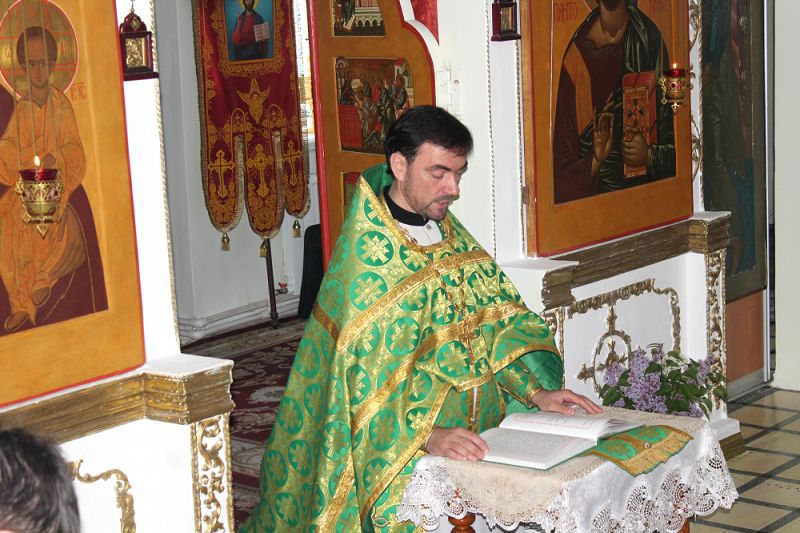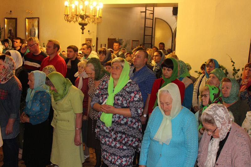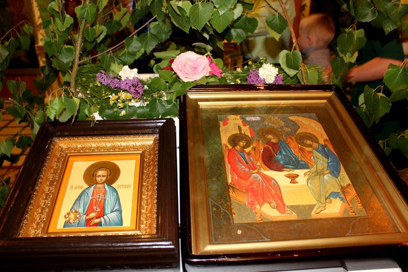 Праздничные богослужения совершил настоятель храма иерей Виталий Кудрявцев. После Литургии, как и во всех храмах Русской Православной Церкви, была совершена особая служба с коленопреклонными молитвами – вечерня в воспоминание сошествия на святых апостолов Духа Утешителя.