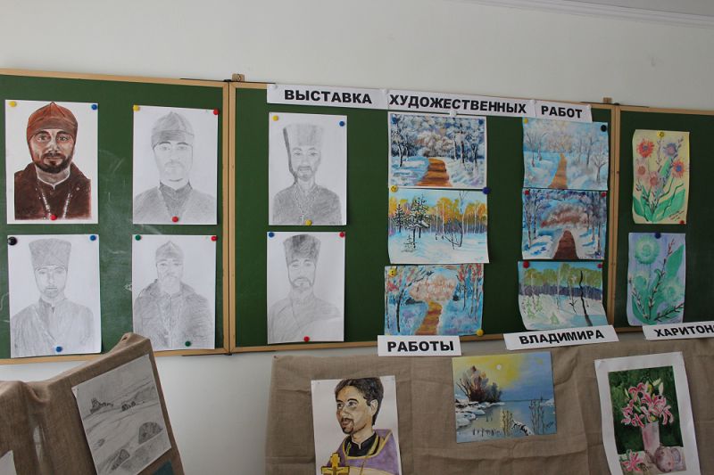 Затем в классе воскресной группы все желающие могли познакомиться с итоговой выставкой художественных работ воспитанников преподавателя рисования Любови Сергеевны Ковалёвой. Рисунки выполнены в различной технике: графика, пастель, акварель, гуашь, масло.
