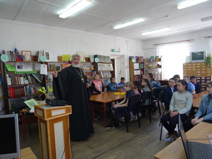 Обо всё этом и ещё о многих других сторонах жизни святых рассказывал священник Вячеслав на встречах с учащимися школ и техникума в районной детской и центральной библиотеках посёлка Адамовка и Комсомольской общеобразовательной школе.