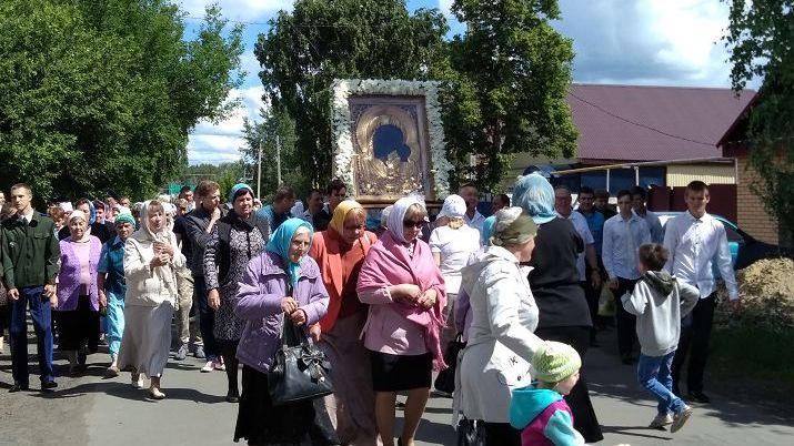 КУВАНДЫК. 8 июня 2018 г. В девятую пятницу по Пасхе, день празднования в честь иконы Божией Матери «Табынская», в храме Покрова Пресвятой Богородицы состоялась Божественная литургия и прошел крестный ход с самой большой святыней и покровительницей Уральского края.