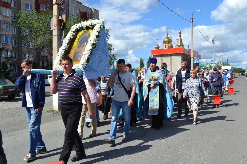Богослужение началось с молебна в левом приделе Петропавловского собора, освященном в честь иконы Божией Матери «Табынская». По окончании Божественной литургии прихожане храма совершили крестный ход с чтимой святыней к центру города. В многолюдном торжественном шествии участвовали воспитанники воскресной школы имени святого благоверного князя Александра Невского при Петропавловском соборе.