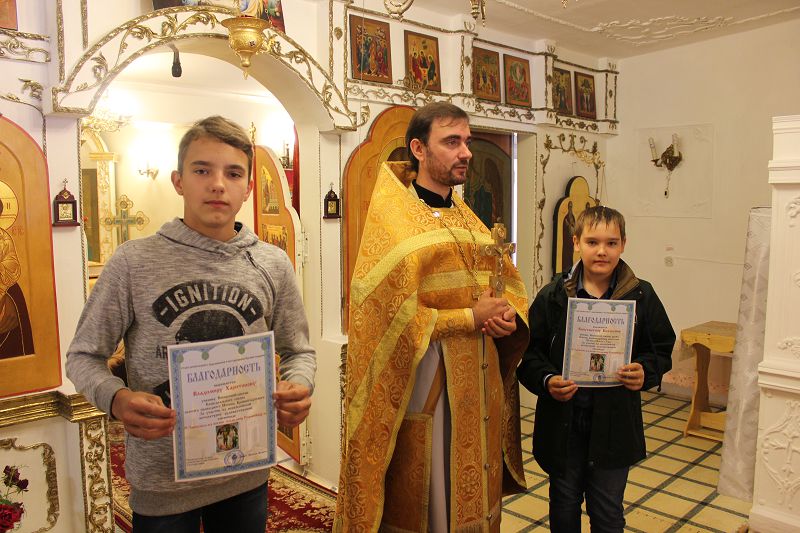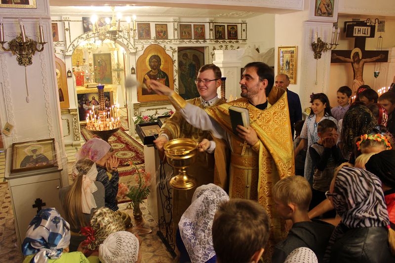Юные прихожане, затаив дыхание, слушали проповедь настоятеля храма, с восторгом и детской непосредственностью принимали святую воду во время окропления. Чистая детская молитва наполнила храм, и лица взрослых посветлели. Батюшка благословил всех присутствующих на успешный учебный год.