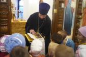 Во время экскурсии детишкам было рассказано об устройстве храма, о значении его в жизни каждого человека. Священник кратко рассказал жития особо почитаемых святых, изображённых на иконах, ответил на вопросы, возникшие в ходе беседы. Воспитатели и дети попросили батюшку показать икону Георгия Победоносца и рассказать об этом святом, так как совсем недавно они изучали эту тему на уроке и хотели пополнить и закрепить полученные знания. Затем детки поставили вместе с отцом Евгением свечи о здравии своих родителей. Ребятам это очень понравилось, ведь многие из них в храме оказались впервые. В дар детскому саду была преподнесена икона Владимирской Божией Матери, а деткам священник подарил книжечки. Воспитанники детского сада, довольные экскурсией, обещали рассказать о своих впечатлениях родителям.