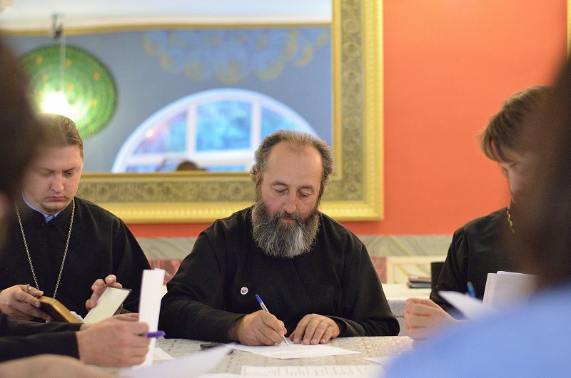 Собрание преподавателей возглавил директор курсов протоиерей Александр Куцов. На собрании присутствовали педагоги: протоиерей Сергий Кваша, иереи Александр Трушин, Максим Бражников, Александр Курсаков, Григорий Сычев, Сергий Куцов и Георгий Чернявский, матушка Юлия Куцова, Елена Гоппе и Наталья Фатеева.
