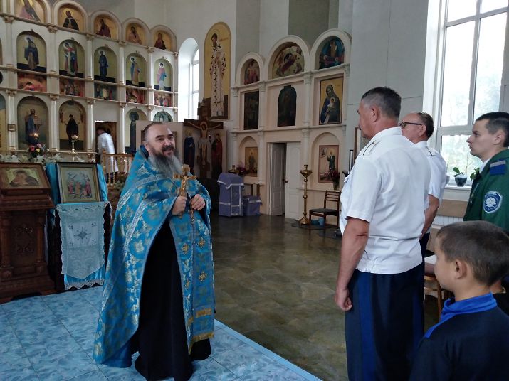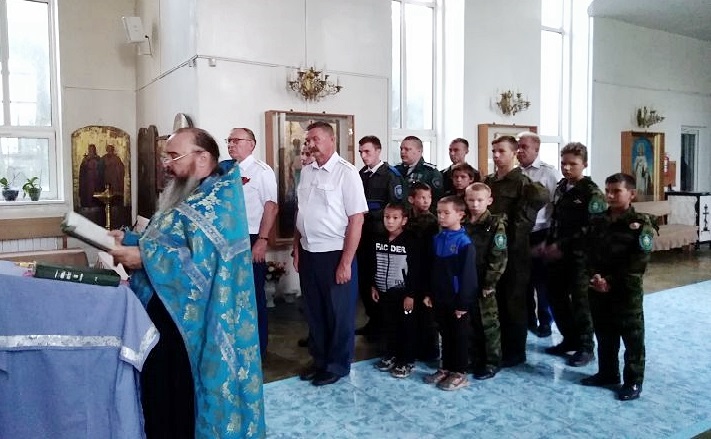На богослужении молились казаки кувандыкского станичного казачьего общества во главе с помощником атамана по военно-патриотической работе, есаулом О.В. Зябревым, учащиеся казачьего кадетского класса школы № 4 под руководством А.П. Сыругина и его приемные дети.