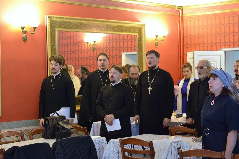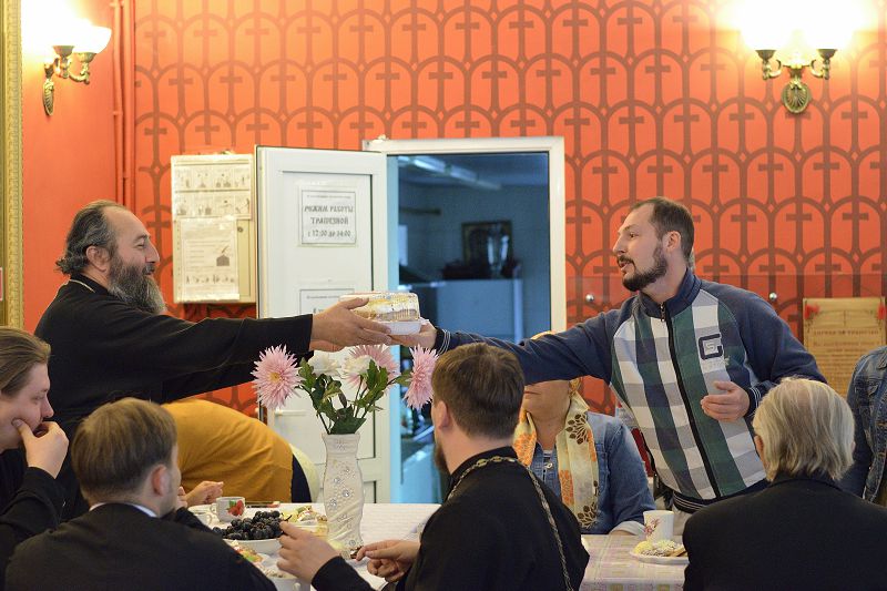 Затем в Православном молодёжном центре состоялось чаепитие, где в дружеской атмосфере преподаватели и студенты курсов смогли пообщаться и познакомиться поближе. Протоиерей Александр Куцов сказал о том, как важно для верующего человека получить как можно больше знаний в области богословия, литургики, церковнославянского языка, заново раскрыть для себя великое значение Ветхого и Нового Заветов, познакомиться с особенностями церковного служения и песнопения.