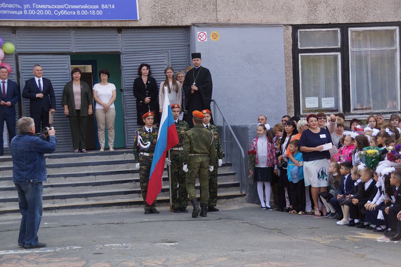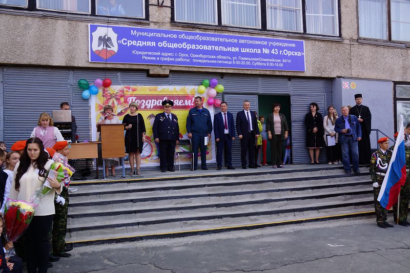 ОРСК. 1 сентября 2018 г. Клирик храма святого великомученика и целителя Пантелеимона священник Александр Курсаков посетил торжественную линейку, посвященную началу учебного года в школе № 43.