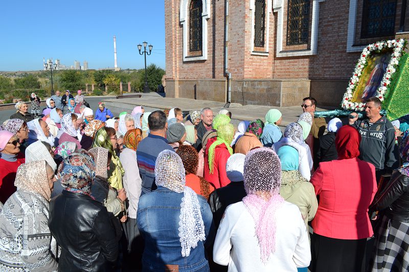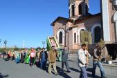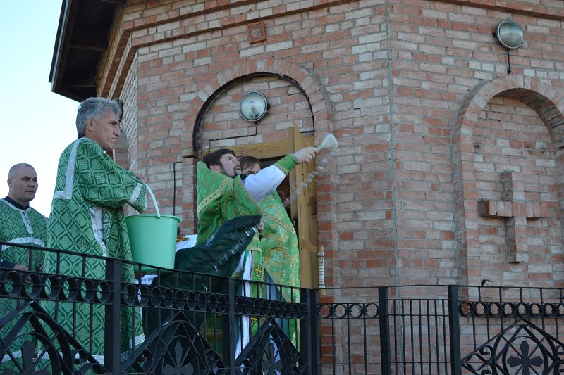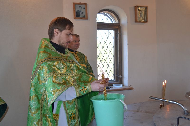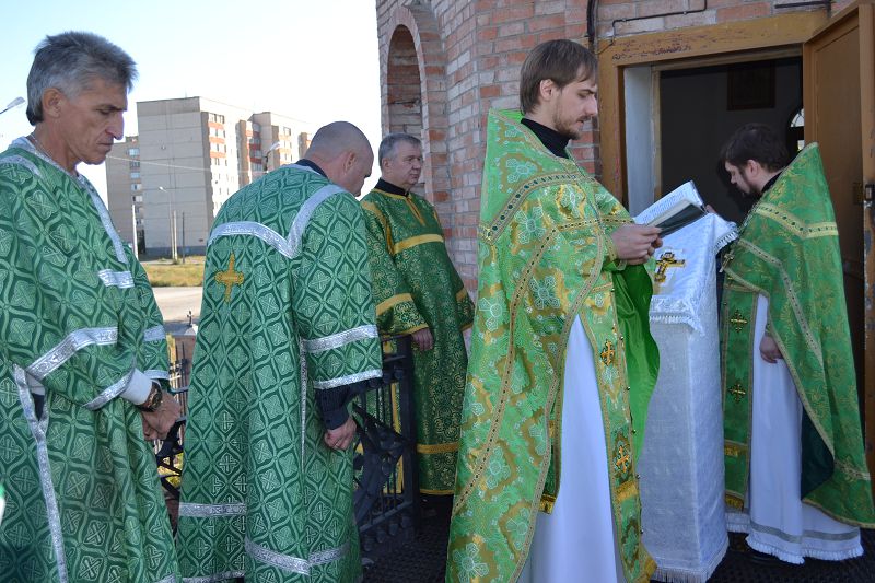Настоятель храма св. прп. Сергия Радонежского иерей Андрей Пелипенко и клирик храма свв. апп. Петра и Павла иерей Сергий Волков отслужили Божественную литургию, а затем молебен с водоосвящением и крестный ход вокруг храма в честь престольного праздника.