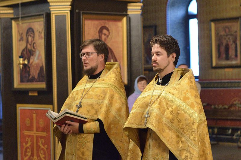 Актовый день начался с праздничного молебна в Свято-Георгиевском кафедральном соборе, который совершили директор курсов протоиерей Александр Куцов, духовник курсов протоиерей Анатолий Сопига, священники Максим Бражников, Григорий Сычёв, Сергий Куцов и Георгий Чернявский. За богослужением пел хор курсов под управлением матушки Юлии Куцовой. Священнослужители и учащиеся курсов обращались в коленопреклонных молитвах к святому апостолу: «О великий и всехвальный апостоле и евангелисте Иоанне Богослове, наперстниче Христов, теплый наш заступниче и скорый в скорбех помошниче! Умоли Господа Бога даровати нам оставление всех прегрешений наших. Елико согрешихом от юности нашея во всем житии нашем делом, словом, помышлением и всеми нашими чувствы».