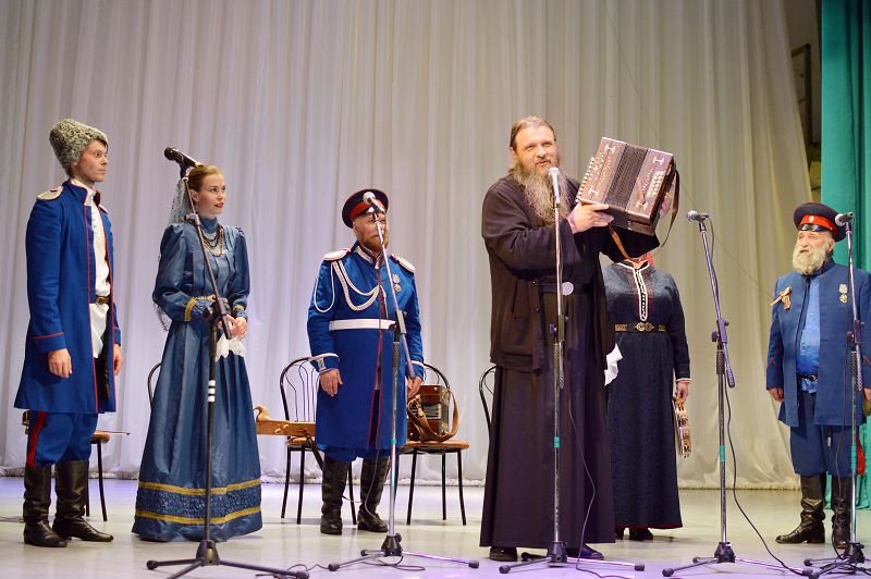 Во время концерта прозвучали популярные казачьи песни, а также песни из нового фильма протоиерея Сергия Баранова «Далеко», показ которого состоялся днем раньше. По окончании выступлений артистов слово взял протоиерей Сергий Баранов. Батюшка поблагодарил участников ансамбля «Казачий круг» за харизму, за талант, за ту радость, которую они подарили орчанам: «Можно исполнять уникальный фольклор, выучив ноты, но для настоящего искусства нужна еще харизма!.. Вы – великие люди. Какую радость сегодня подарили!». И в память о нынешней встрече, чтобы радость была во всех отношениях ощутима, отец Сергий подарил артистам старинный антикварный баян.