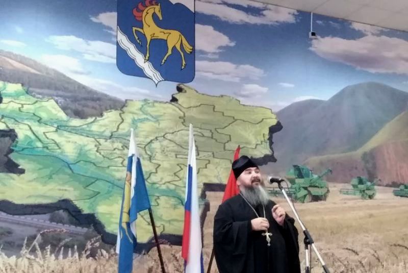 КУВАНДЫК. 25 октября 2018 г. Настоятель храма Покрова Пресвятой Богородицы протоиерей Симеон Антипов принял участие в торжественном мероприятии, посвященном осеннему призыву в Вооруженные силы РФ.