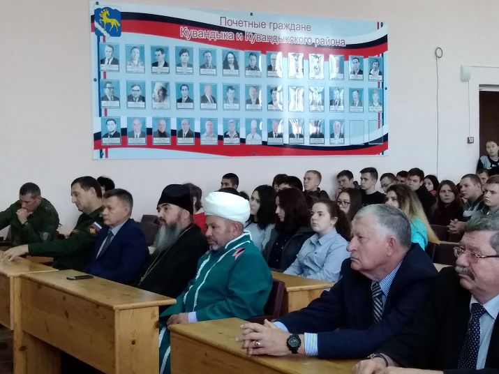 В актовом зале администрации Кувандыкского округа собрались представители администрации, совета ветеранов, общественных организаций, призывники, родители, друзья и родные будущих воинов.