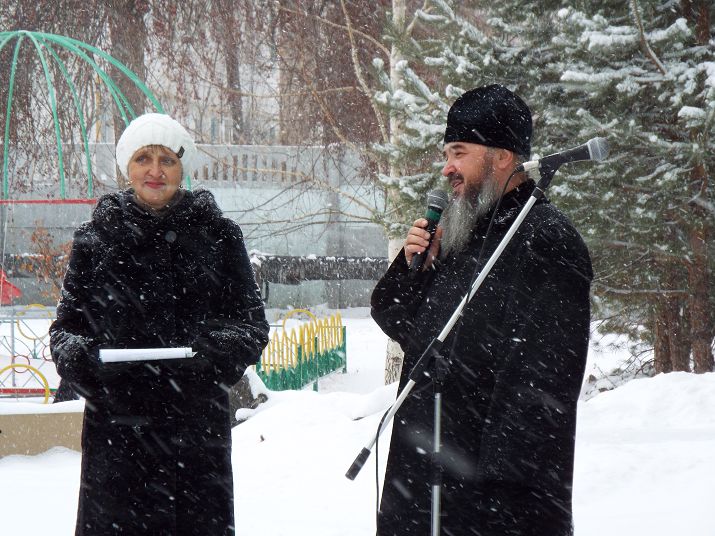 На территории социально-реабилитационного центра «Аленушка» собрались почетные гости: первый заместитель главы Кувандыкского городского округа Алексей Александрович Губанов, начальник отдела министерства экономического развития Оренбургской области Владимир Николаевич Алабердин, заместитель главы Кувандыкского городского округа по социальным вопросам Александр Николаевич Юрьев, начальник отдела культуры Сергей Васильевич Зобенко, матушка Наталья Антипова, Светлана Анатольевна Дружинина.