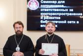 В конце семинара ректор ОЦАД митрополит Волоколамский Иларион вручил всем участникам удостоверения об окончании обучения. В церемонии вручения удостоверений также принимали участие помощник председателя Издательского совета иеромонах Макарий (Комогоров) и директор Центра непрерывного образования ОЦАД Иван Александрович Парфёнов.