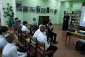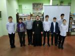ОРСК. 7 декабря 2018 г. В городской юношеской библиотеке № 6 клирик Свято-Георгиевского собора священник Григорий Сычев встретился с учащимися седьмых и восьмых классов средней школы № 53.