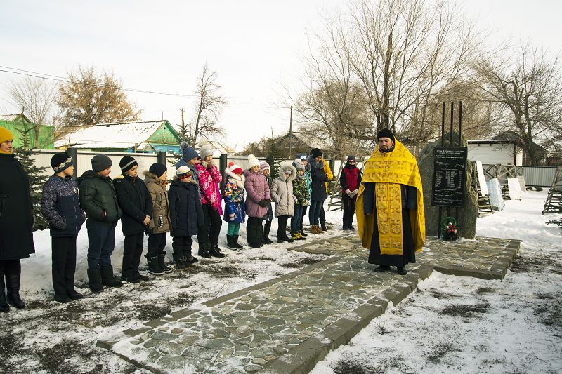 Памятный день начался с небольшого митинга у памятника по погибшим воинам, установленного на территории храма. На мероприятии присутствовали представители Кувандыкского казачьего хуторского общества, представители колонии поселения, расположенной на территории поселка, учащиеся средней общеобразовательной школы и жители поселка Ильинка.