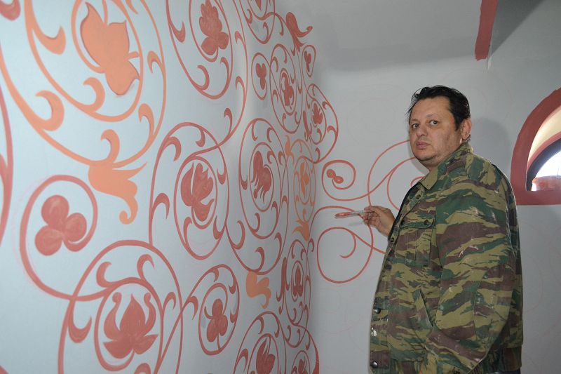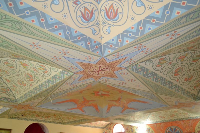 В нижнем приделе над росписью стен и свода трудился художник Александр Чемирзов. За основу взят орнамент собора Василия Блаженного в Москве. Песочный цвет фона выбран неслучайно. Нижний храм освящен в честь Иоанна Предтечи, который вырос в пустыне, готовя себя к великому служению. А цветы – это как расцветшая пустыня, подобно тому, как расцветает, преображается человеческая душа, обретя веру.
