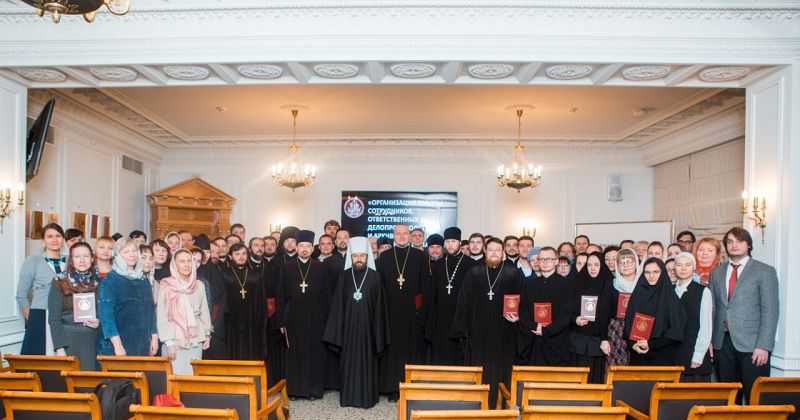 В закрытии семинара принял участие Ректор ОЦАД митрополит Волоколамский Иларион. Вручая слушателям удостоверения, Владыка обратил их внимание на важность правильного ведения документов, реализация которых может быть направлена как на объединение, так и на внесение смуты и непонимания между людьми. Он привел ряд примеров, подтверждающих необходимость соблюдения правил архивного хранения документов, отметив, что «церковные архивы — одно из средств трансляции Предания Церкви. Архивные записи существовали с первых лет земного бытования Церкви Христовой. Достаточно вспомнить о мартирологах — списках мучеников древней Церкви. Деяния Апостолов — тоже своего рода упорядоченный архив апостольских времен». Владыка также упомянул, что Церковь старается раздвинуть границы и принять как можно больше людей, стремящихся к вере и познанию Бога, а «хорошо составленные документы, находящиеся в открытом доступе, этому способствуют».