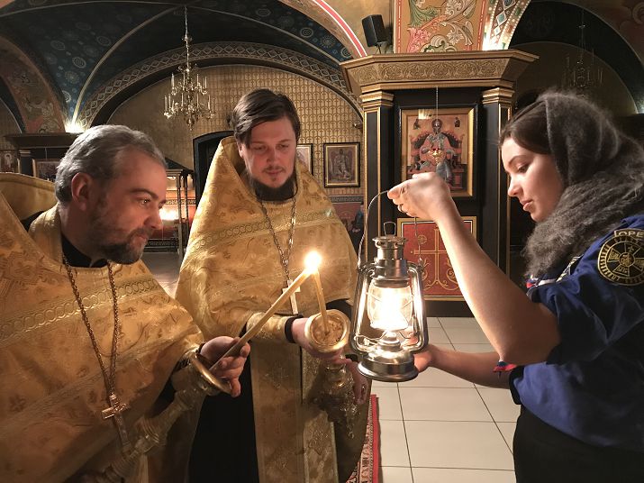 ОРСК-НОВОТРОИЦК-ГАЙ. 4 января 2019 г. Наставник Оренбургского отделения Братства православных следопытов Сергей Рожнов и следопыт III разряда Александра Глухова привезли в Оренбургскую область Вифлеемский огонь, который взяли у екатеринбургских скаутов.