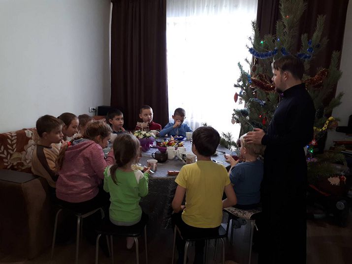 А затем юные христославы зашли в гости к клирику кафедрального собора иерею Григорию Сычёву. После пения колядок отец Григорий рассказал ребятам об истории колядок, об их значении, о том, как важно подарить другому человеку радость и свет от Рождества Христова, поделиться теплом своей души. В семье священника юных артистов угостили вкусным обедом, который прошёл тепло и радостно.