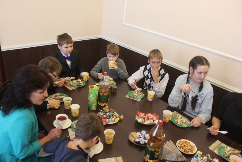После пения колядок христославы подарили мэру города икону Рождества Христова. Далее встреча продолжилась за столом с горячим чаем и угощением. На встрече присутствовала также заместитель главы города по социальным вопросам Юлия Владимировна Димитриева.
