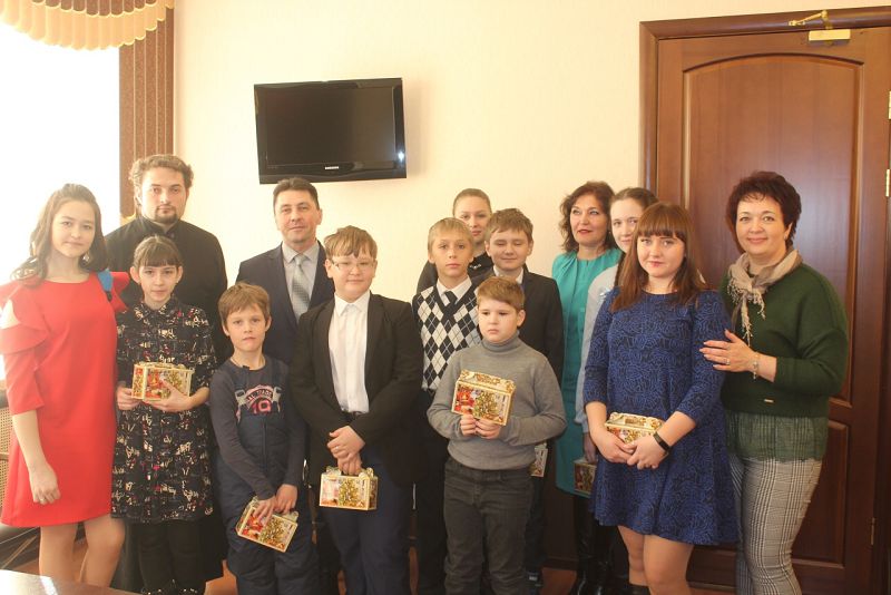 МЕДНОГОРСК. 9 января 2019 г. По сложившейся традиции воспитанники воскресных школ Медногорского благочиния и православная молодежь поздравили с Рождеством Христовым главу города Медногорска –Дмитрия Владимировича Садовенко.
