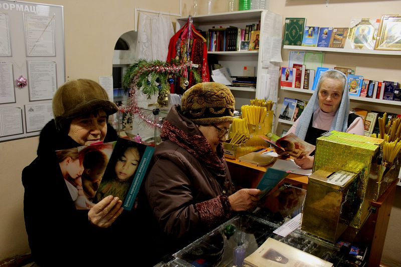 В церковной лавке распространяются листовки и памятки в защиту жизни ещё не родившихся малышей. На протяжении нескольких лет при женской консультации Городской больницы прихожанки ведут плодотворную профилактическую работу среди молодёжи и населения в защиту жизни и семейных ценностей: проводят беседы с женщинами о сохранении беременности, демонстрируют экспозицию мобильной выставки «Человеческий потенциал России. За жизнь», раздают буклеты, демонстрируют наборы моделей человеческих эмбрионов-куколок, показывают тематические видеоролики. Женщинам, оказавшиеся перед сложным выбором, предоставляется и материальная помощь – одежда для младенцев и некоторые другие необходимые вещи.
