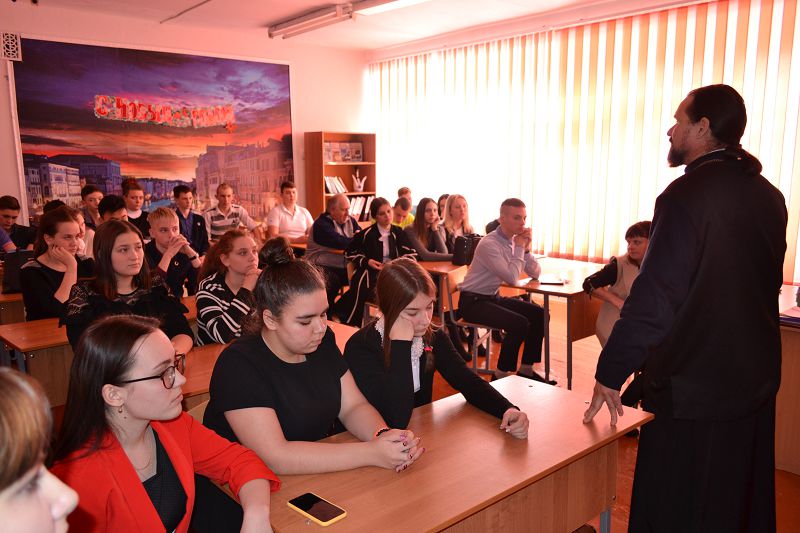 В рамках профилактики здорового образа жизни подростков протоиерей Сергий Кваша провел со старшеклассниками беседу, которая сопровождалась презентацией «Диалог о вредных соблазнах» по проекту «Общее дело». Показ фильма отец Сергий дополнил рассказом о том, какой вред наносят пагубные соблазны здоровью подростка, а впоследствии влияют на всю его дальнейшую жизнь. Отец Сергий обратил внимание на то, что только разумное отношение к здоровью позволяет человеку на долгие годы сохранить бодрость, высокую работоспособность, социальную активность и достичь долголетия.