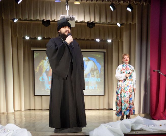 В начале концерта зрителей поздравил настоятель Покровского храма иерей Михаил Рябинов. Делясь со светлинцами своей радостью о Родившемся Спасителе, священник пожелал всем счастья в труде, радости от своего дела, радости созидания, ведь это является важной составляющей полноценной жизни человека.