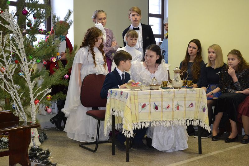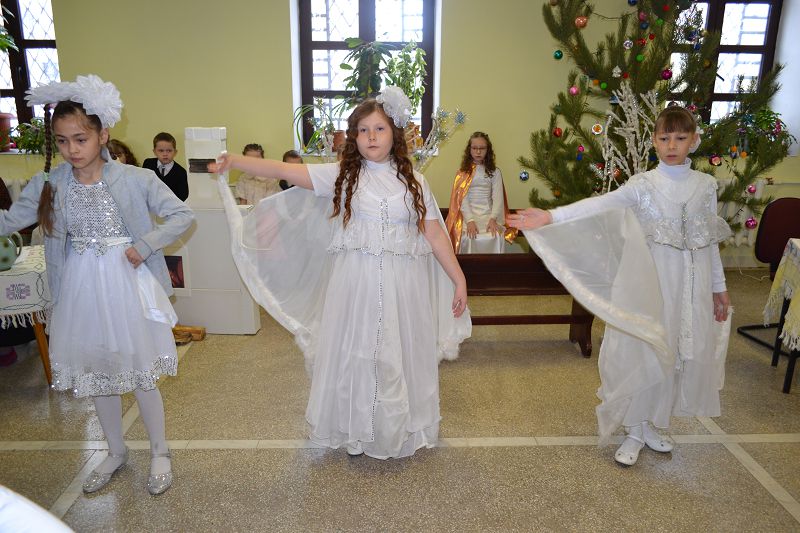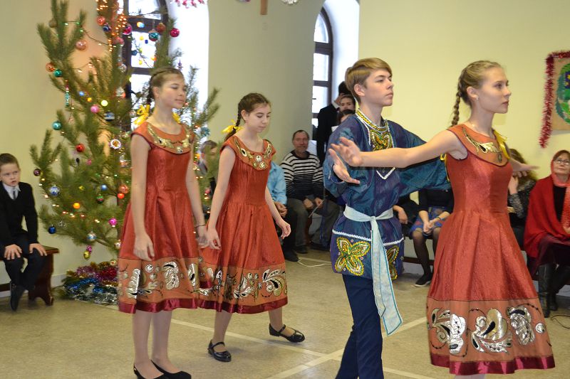 Юные актеры православного театра «Зернышко» показали спектакль «Рождественская история». В праздничную программу были включены православные песнопения, стихи, Рождественские колядки, танцы и Рождественский тропарь, который пропели все учащиеся воскресной школы. В исполнении Ильи Слинько, Дарьи Канаевой, Никиты Горянина и Евгении Федотовой прозвучали классические произведения.