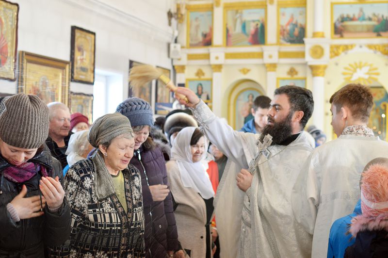 НОВОТРОИЦК. 18 января клирик собора иерей Сергий Волков совершил Божественную литургию в Петропавловском соборе. По окончании Божественной литургии отец Сергий совершил чин великого освящения воды в водосвятной часовне и поздравил верующих с сочельником и наступающим праздником Богоявления. Затем было совершено освящение сочива. В этот день клирик храма иерей Никита Кваша также совершил чин великого освящения воды в иордани – проруби на реке Урал, подготовленной сотрудниками ДОСААФ г. Новотроицка.