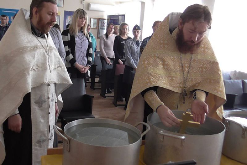 ОРСК. 18 января священники Михаило-Архангельского храма посетили пенитенциарное учреждение СИЗО-2 УФСИН России по Оренбургской области и поздравили всех сотрудников и содержащихся под стражей с праздником Крещения Господня. Для православных христиан этот праздник является одним из важнейших. К сожалению, не у всех сотрудников есть возможность посещать в этот день храмы. В связи с этим настоятель Михайло-Архангельского храма иерей Геннадий и клирик иерей Сергий Новиковы уделили время и посетили следственный изолятор. Священнослужители освятили воду, окропили режимный корпус и преподнесли рождественские подарки, рассказали об истории и традициях праздников Рождества Христова и Крещения Господня. После беседы с духовенством сотрудники и содержащиеся в СИЗО могли взять освященную воду и услышать праздничные песнопения хора Михаило-Архангельского храма г. Орска.