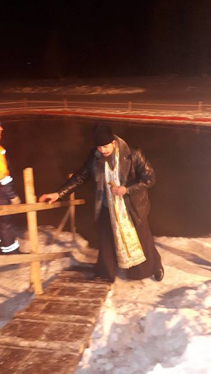 ОРСК. 19 января в полночь в храме Преображения Господня началась Божественная литургия, которую совершили иерей Игорь Пахомов и иерей Александр Карпунин. Пономарили на литургии ученики православной гимназии во имя святых Царственных страстотерпцев при приходе Преображения Господня. Многие приобщились Святых Христовых Таин. После литургии началось великое освящение воды, и, под звон колоколов – крестный ход вокруг храма. После службы отец Игорь окропил крещенской водой храмовый комплекс, а отец Александр поехал на реку Урал (База моржей) освящать иордань, где уже собрались люди, желавшие принять ледяную купель. После освящения многие, помолившись, погрузились в освященную воду.