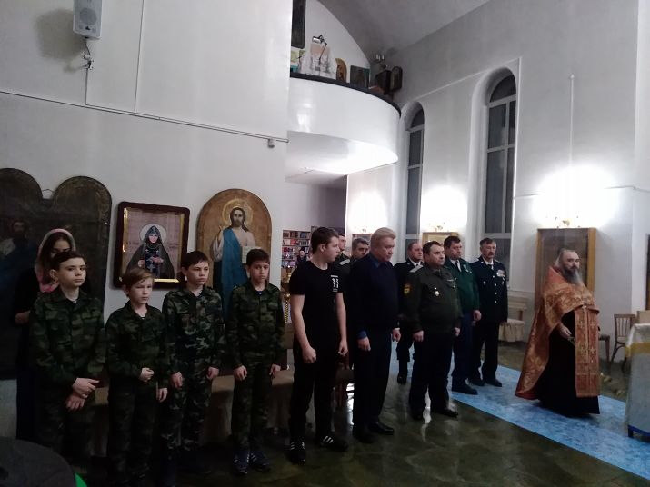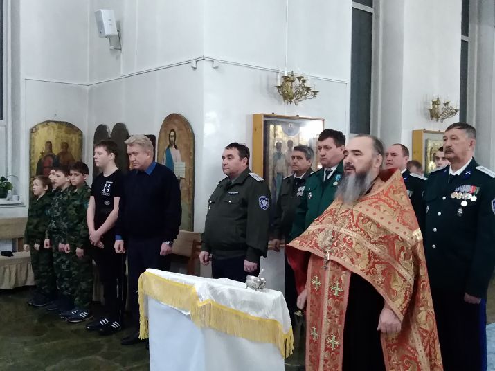 На молитву собрались казаки Кувандыкского станичного казачьего общества, руководитель кадетского казачьего класса школы № 4 Алексей Сыругин и его приемные дети, ученики казачьего класса.