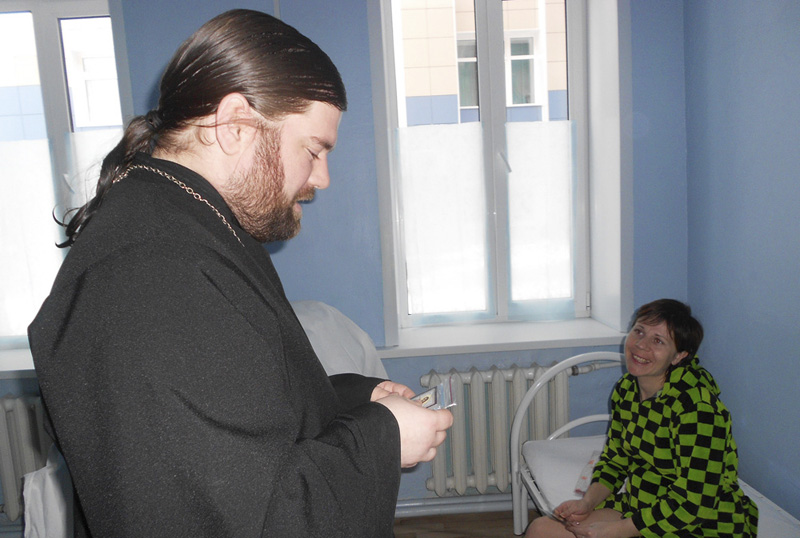 МЕДНОГОРСК. 23 ноября 2012 г. В преддверии праздника Дня матери по благословению Преосвященнейшего Иринея, епископа Орского и Гайского, настоятель храма святителя Николая Чудотворца г. Медногорска пос. Заречного иерей Андрей Пелипенко посетил родильные отделения Медногорской городской больницы.