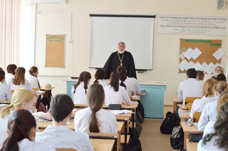ОРСК. 21 февраля 2019 г. Руководитель епархиального отдела по церковной благотворительности и социальному служению, действующий врач-хирург протоиерей Вячеслав Кочкин провел лекцию в филиале Орского медицинского колледжа на тему «Личность, свобода, послушание».