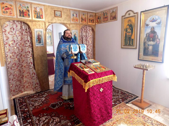 АКТЮБИНСКИЙ. 25 февраля 2019 г. В день празднования в честь Иверской иконы Божией Матери в храме во имя святых мучениц Веры, Надежды, Любови и матери их Софии посёлка Актюбинского Светлинского района прошло богослужение.