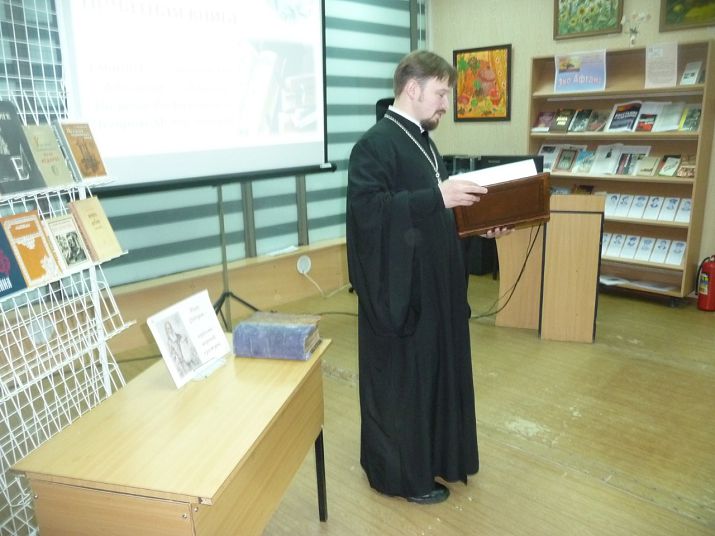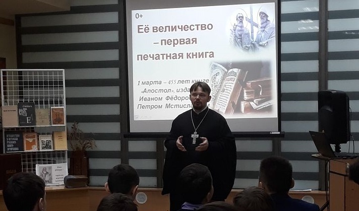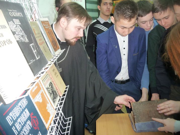 ОРСК. 1 марта 2019 г. В Центральной библиотеке им. М.Горького состоялась встреча учащихся средней школы № 27 с клириком Свято-Георгиевского кафедрального собора Григорием Сычёвым.