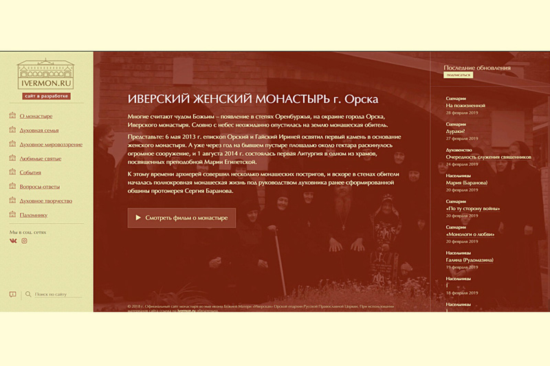 ОРСК. 8 марта 2019 г. К празднику Иверской иконы Божией Матери – на домене «ivermon.ru» был запущен в работу официальный веб-сайт женского монастыря во имя иконы Божией Матери «Иверская».