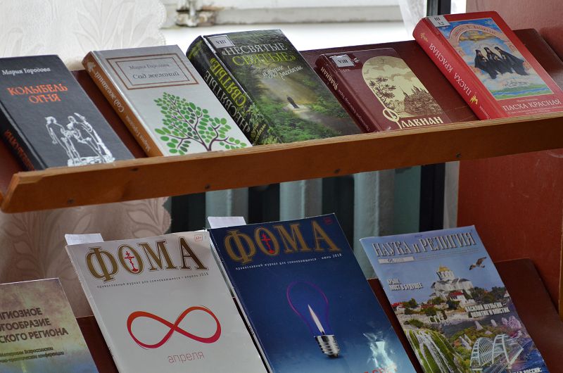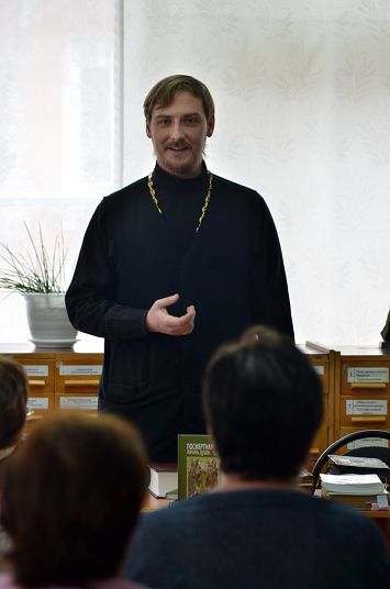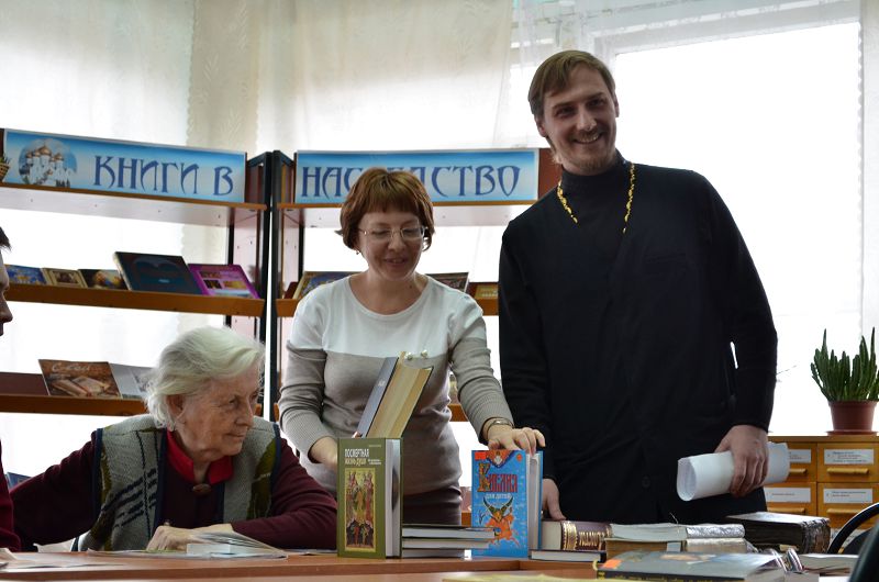 С особой теплотой присутствующие восприняли рассказ священника о значении Библии и святоотеческой литературы на его пути к Богу и Православию. Это подтолкнуло публику к потоку нескончаемых вопросов о вере. Наталье Николаевне пришлось разбавить задушевную беседу обзором представленных на стенде православных книг, которые любой желающий может взять в библиотеке. Для родителей завсектором краеведения приготовила детские книги с поучительными рассказами о православной вере, написанные простым доступным языком.
