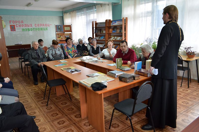 НОВОТРОИЦК. 14 марта 2019 г. В Центральной библиотеке им. Горького состоялась встреча клирика собора святых апостолов Петра и Павла иерея Сергия Волкова с постоянными читателями и представителями социально-реабилитационного центра для несовершеннолетних «Надежда».